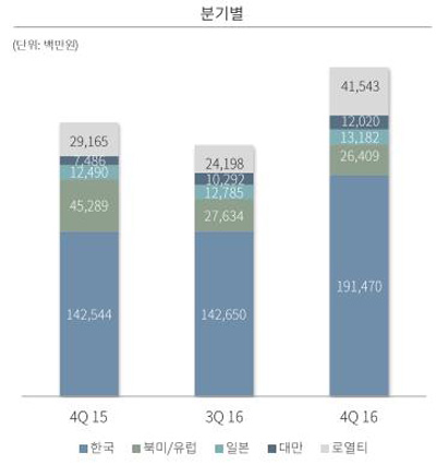 ▲ 2016년 3, 4분기 지역별, 로얄티 매출 구성표(엔씨소프트 제공)