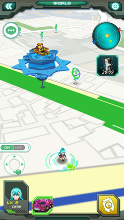 우선 '터닝메카드고'를 실행하면 GPS 장치에 따라 사용자의 위치를 표시한 지도 위에 캐릭터, 메카니멀, 메카드스탑, 타워 등이 나타난다. 메카니멀은 지도상에 미니카 모습으로 포켓몬고로 따지면 몬스터와 동일한 개념이다.