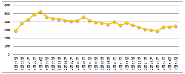 기간별로는 지난달 24일 291만명으로 시작해 최고 524만명(1월 28일)을 기록했으며, 지난 16일 최저 수치인 287만명으로 떨어졌다가 지난 18일 2세대 포켓몬 업데이트 후 반등세를 보이고 있다.