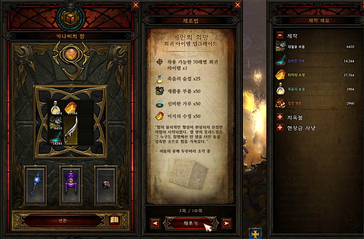 대신 아이템 파밍 과정에서 획득하거나 분해를 통해 얻는 제작 재료를 별도의 공간을 통해 보관할 수 있는 제작 재료 창고를 추가해 기존 창고의 일부 칸의 활용도는 높아졌다.