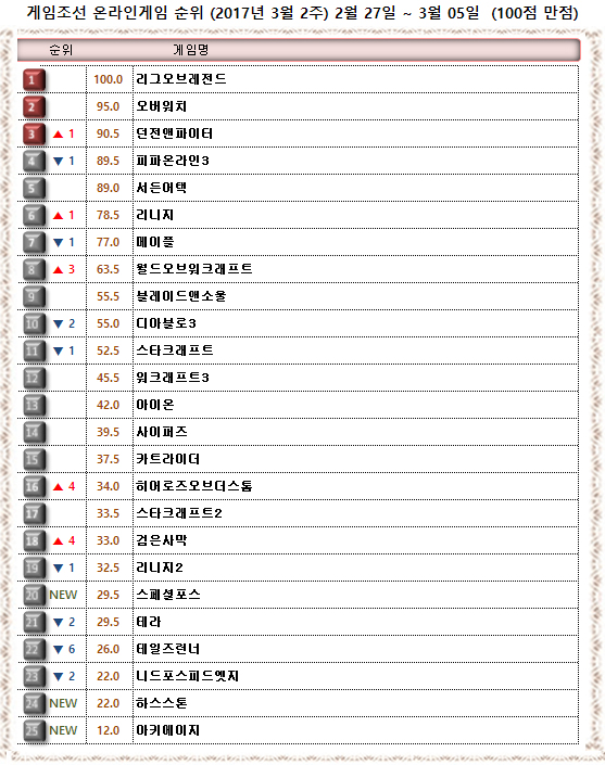 먼저 최상위권에서 ‘리그오브레전드’와 ‘오버워치’가 장기간 1, 2위를 지킨 가운데 ‘던전앤파이터’가 피파온라인3를 제치고 1계단 상승해 3위로 올라섰다.