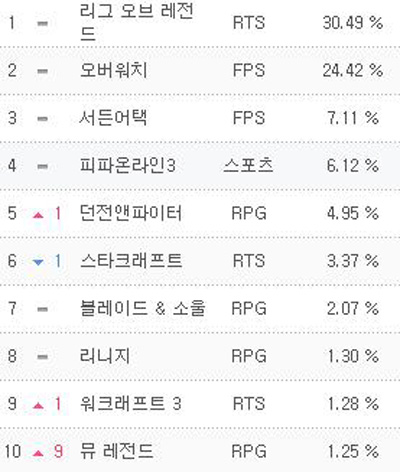 ▲ 2017년 3월 25~26일 양일간 게임트릭스 PC방 순위 갈무리