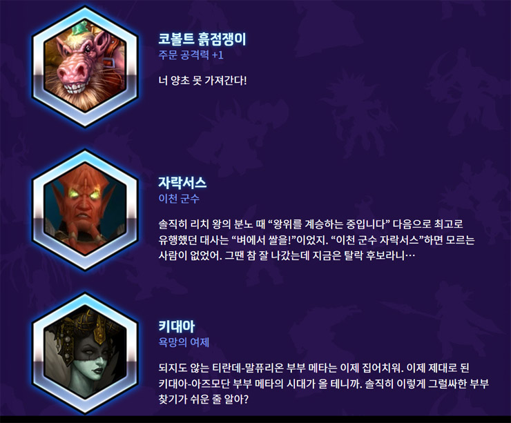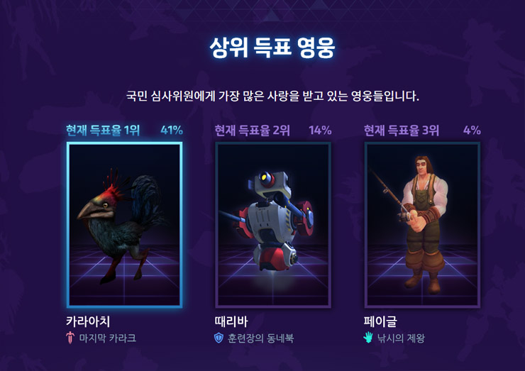 히어로즈오브더스톰에서는 영웅 선발전이 열렸다. 401명의 영웅 후보 가운데 투표를 통해 최후의 1인만 시공의 폭풍에 남는다는 설정으로 코볼트 흙점쟁이나 자락서스, 키대아 등은 탈락 위기에 놓인 상황이다.
