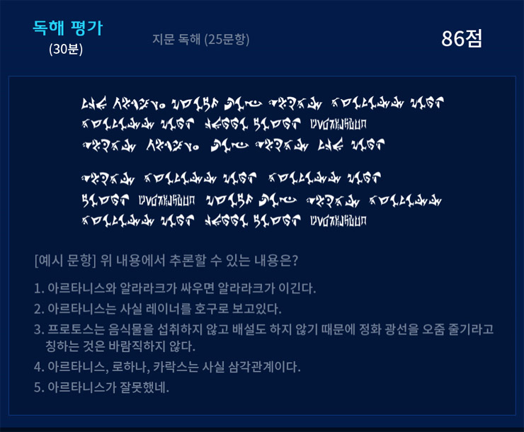 또 듣기 평가와 문법 평가, 독해 평가로 구성된 프로토스 어학 능력 시험에 대해서도 공개했다. 해당 시험의 점수를 모두 합산하면 401점으로 만우절인 4월 1일을 뜻한다.