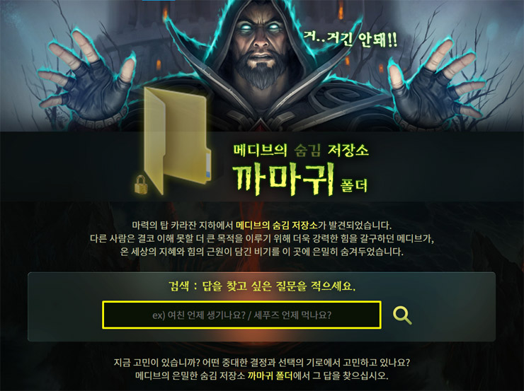 월드오브워크래프트(와우)에서는 메디브의 숨김 저장소를 통해 답을 찾고 싶은 질문을 올리고 답을 찾을 수 있는 페이지가 등장했다.