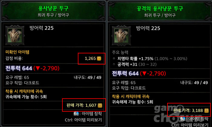 일반적으로 감정한 아이템은 감정가 이상으로 판매가가 확 뛰는 것은 알고 있겠지만, 실제로 감정 시, 마정석이 추가로 들어가기 때문에 감정까지 해가면서 판매가를 올리는 유저는 없을 것이다. 하지만 '희귀' 등급 아이템은 감정 시 마정석이 소모되지 않는다는 것에 주목, 귀찮더라도 희귀 등급 아이템은 감정 이후 판매하면 다만, 몇백 골드라도 더 챙길 수 있다.