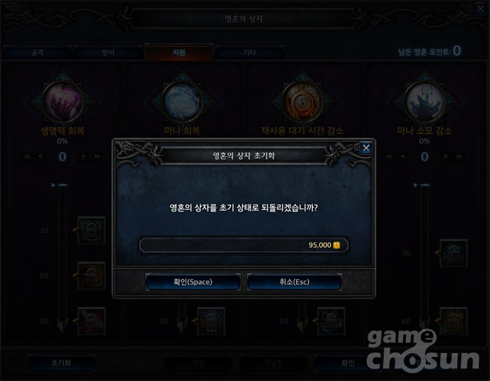▲ 영혼의 상자 초기화는 영혼 레벨당 1천젠을 요구한다.