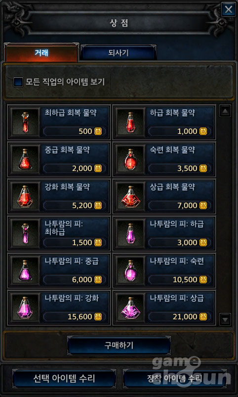 이는 자신이 보유한 보석가루나 불완전한 각인서 등 당장 필요하지 않은 소모품을 판매할 수 있다는 얘기이기도 하다.