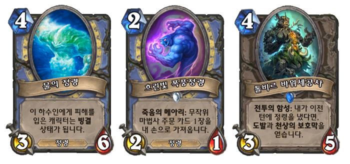 아울러 기존 카드 일부도 ‘정령’으로 분류된다. 물의 정령, 불의 군주 라그나로스, 먼지 악령, 용암 광전사 등 18개다.
