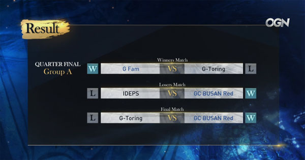 박진유(암살자)의 상성상 우위를 적절히 활용한 GC부산레드는 지토링에게 계속해서 압박을 가했다. 박진유는 박경민을 잡아내며 3대2를 만들었고, 숫적인 우위를 점한 GC부산레드는 교체와 난입을 적절히 활용해 승부를 마무리지었다.