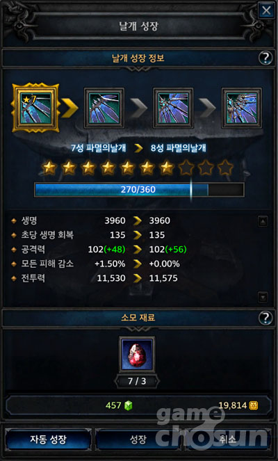 또한, 강화 시스템 가운데 빼놓게 되는 것이 '날개 강화'다.