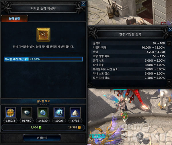 특히, 아이템 옵션을 조정하여 세팅할 수 있는 '치명타 확률', '치명타 피해', '재사용 대기 시간 감소'와 같은 옵션이 그러하다.