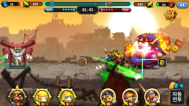 자동 전투도 지원돼 이용자는 무장과 사병을 조합해 놓기만 하면 된다. 하지만 이들은 여러 게임 모드마다 각각의 상성이 존재하기 때문에 전략과 육성, 무장을 수집하는 재미 요소를 잘 살려냈다.