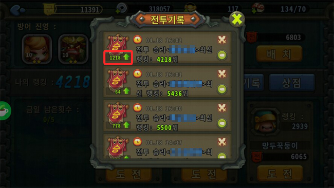 누적된 승패에 따라 실시간으로 순위를 매겨 매일 랭킹 보상이 지급된다. 자신보다 높은 랭킹의 이용자에게 승리 시 순위가 서로 맞바뀌는 일발역전 시스템이 특징이다.