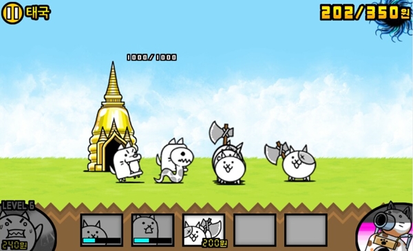 ‘냥코대전쟁’은 유닛을 생산, 라인을 밀어 적 기지를 파괴하는 디펜스 방식의 게임이다. 플레이어는 게임 내 등장하는 국가를 차례로 격파하게 되는데, 그 중심엔 다름아닌 ‘고양이’가 있다.