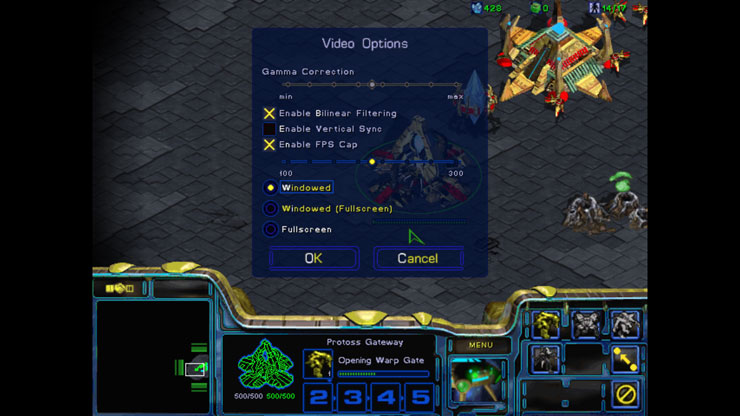 ▲ 스타크래프트 1.18은 윈도우 버전과 윈도우 풀스크린, 풀스크린 모드로 즐길 수 있다