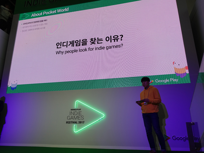 구글플레이는 22일 서울 종로구에 위치한 홍익대학교 대학로 아트센터에서 경진 대회 '구글프레이 인디게임 페스티벌'을 개최하고, 오프라인 전시 및 결승 이벤트를 개최했다.