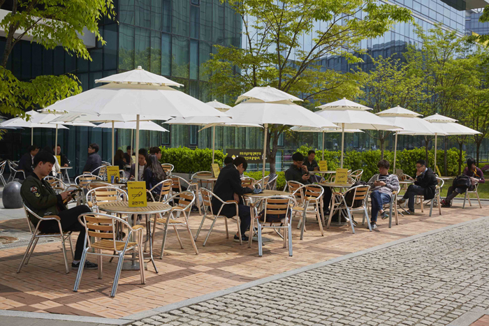 ▲ 사옥 앞에는 앉아서 쉴 수 있는 공간이 마련됐다.