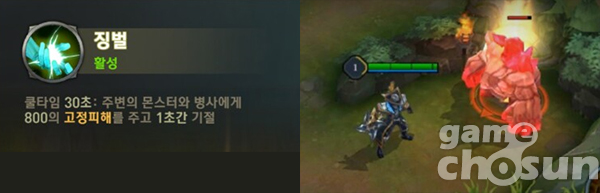징벌은 펜타스톰에 접속 후, 튜토리얼을 모두 완료하면 사용할 수 있는 스펠로 주변의 몬스터와 병사에게 800의 고정 피해를 주고 1초간 기절 효과를 일으키는 효과를 가지고 있다. 이 스펠은 30초 쿨타임을 가지고 있어 다른 스펠에 비해 훨씬 사용이 용이하다. 필드사냥 중 쿨타임이 돌아올 때 마다 꼬박꼬박 눌러주면 필드 사냥 속도를 혁신적으로 늘려줄 수 있다.