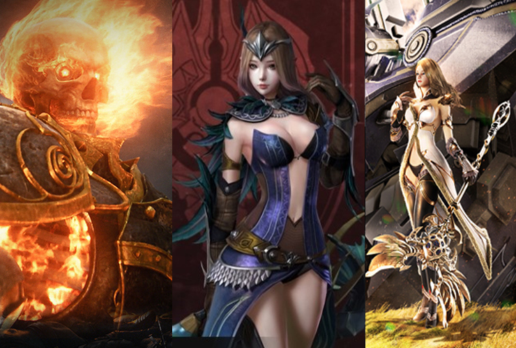 ▲ 리니지M의 데스나이트, 액스의 아처, 아제라:아이언하트의 소서러(좌측부터)