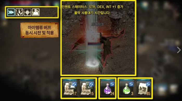 스킬은 이용자가 자동 기능을 활성화한 순서대로 사용된다. 이를 활용해 자신의 스킬 콤보에 적합한 순서로 자동을 활성화하는 것이 중요해 보인다. 또 해당 기능으로 아이템과 주문서들도 자동으로 사용할 수 있다.