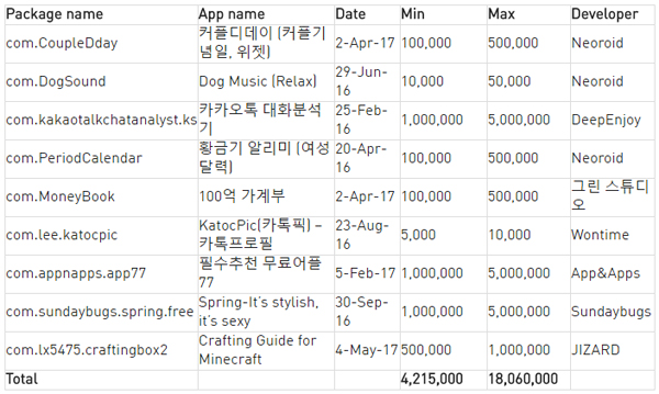 현재 이엔아이스튜디오의 게임들은 구글플레이에서 내려졌다. 멀웨어가 발견된 42개 게임을 포함해 신작 ‘다이노’ 시리즈까지 이엔아이스튜디오가 서비스하는 게임 350여개가 삭제된 것으로 확인됐다.