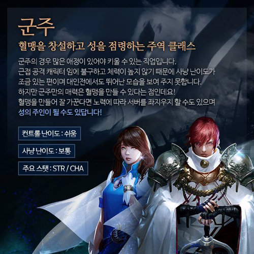 ‘군주’는 게임 내 ‘혈맹’을 창설할 수 있는 유일한 캐릭터다. 혈맹은 리니지 고유의 길드 시스템을 말한다. 원작에서 군주는 공성전 참가, 군주 전용 마법 등 차별화된 권리를 갖고 있다.