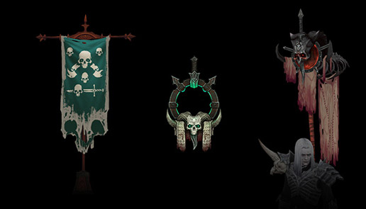 △ 강령술사 귀환 팩을 구매하면 얻을 수 있는 인장 강조 무늬와 초상화, 깃발