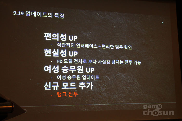 막스 : 9.19 업데이트에서 랭크전투가 굉장히 큰 것은 사실이다. 앞으로도 계속해서 발전해나갈 것이다. 9.18을 통해 경전차와 자주포를 완전히 바꾼 적이 있다. 지난 3월에 한 번 이야기했던 바 있는 HD모델링이 된 지도가 곧 업데이트될 예정이다. 많은 관심 부탁드린다.