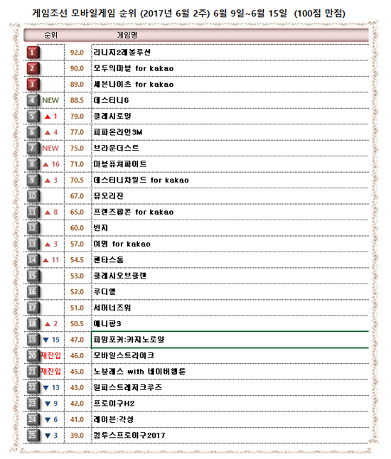 6월 2주 게임조선 모바일게임순위는 넷마블 4형제가 최상위권을 점령하며 독주체제를 구축하는 모습이다.