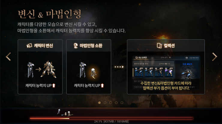 변신을 통해서는 캐릭터의 외형을 변신시켜 능력치를 올릴 수 있고 마법인형을 소환해 별도의 능력치를 높힐 수도 있다. 또한 수집한 변신&마법인형 카드에 따라 컬렉션 부가 옵션이 부여되기도 한다.