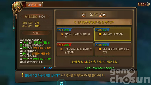 마안도전이 혼자 즐기는 개인전이었다면, 오후 4시에 열리는 '마음의소리'는 월드 내 플레이어가 함께 즐기는 개인전이다.
