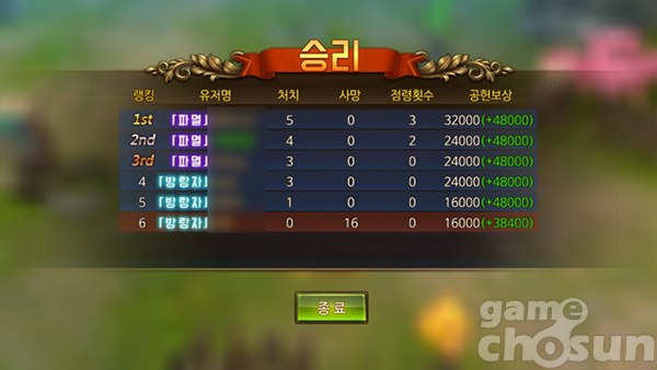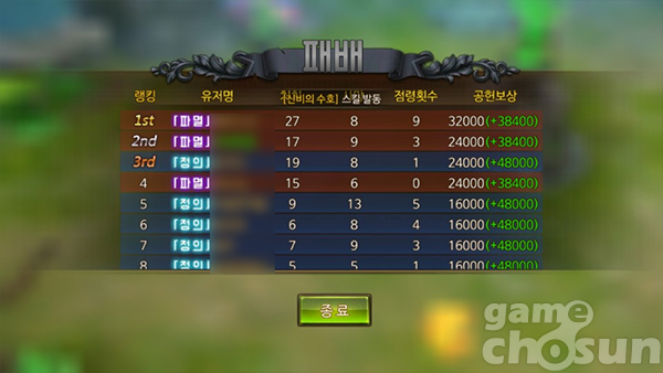 한편, 길드리그가 종료되면 적 처치수, 사망수, 점령횟수 등에 따라 랭킹이 정해지며, 공헌보상을 차등 지급 받는다. 이러한 공헌도 보상은 길드기술에 투자해 플레이어의 전투력을 높히는데 큰 도움이 된다.