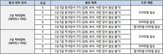 뿐만 아니라 장비 합성 시스템도 추가됐다.