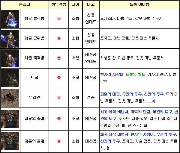 3층과 2층은 등장하는 몬스터가 같고 대신 언데드 몬스터의 비중이 낮아진다.
