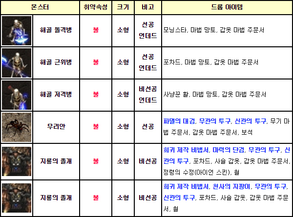 ◆ 용의 계곡 던전 1층: 언데드 중심 사냥터