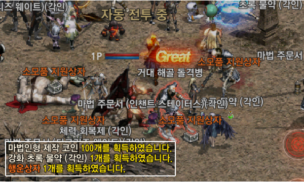 희귀 제작 비법서,힘의 룬(각인),민첩의 룬(각인),지식의 룬(각인), 축복받은 무기 마법 주문서, 축복받은 갑옷 마법 주문서 등 획득