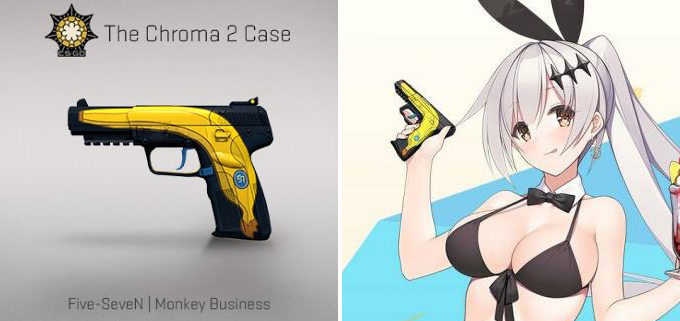 ▲ 카운트스트라이크:GO 파이브세븐(좌), 소녀전선 일러스트 내 총기(우)