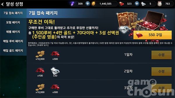 ▲ 루비 550개로 루비 1500+@를 얻을 수 있는 기적의 연금술 '7일 접속 패키지'
