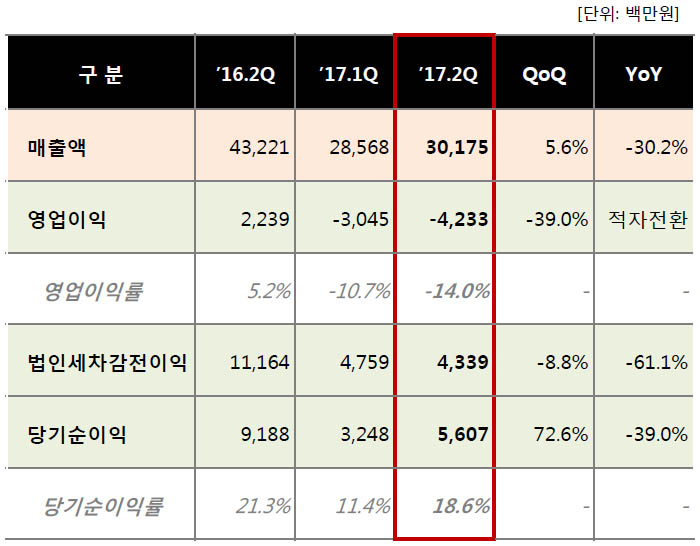 △ 2017년 2분기 게임빌 실적