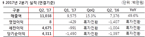 한빛소프트(대표 김유라)가 2017년 2분기 실적을 발표했다.