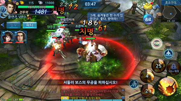 만약 자동전투로 모든 전투가 진행되는 것을 원치 않는다면 전투 설정을 통해 일부 무공은 수동으로 발동할 수도 있다.
