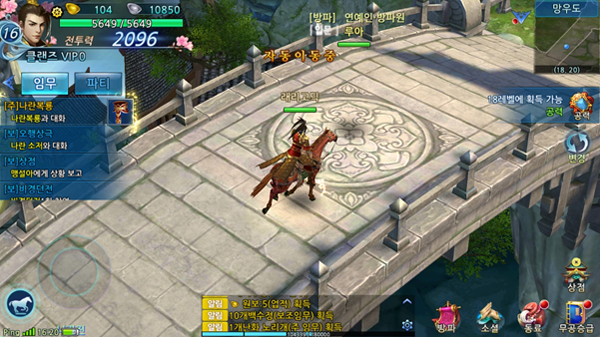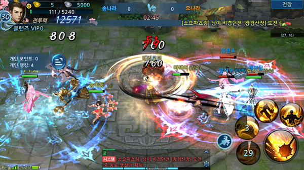 PVE부터 PVP까지 다양한 전투 콘텐츠도 갖췄다. 필드 수련, 보물 탐색, 신비 동굴과 같은 개인 콘텐츠를 통해 경험치와 보물 등 다양한 보상을 획득할 수 있다. 또 영웅 도전, 송요 전쟁터, 문파 경기와 같은 색다른 형태의 PVP 콘텐츠는 이용자들의 전투 본능을 일깨운다.