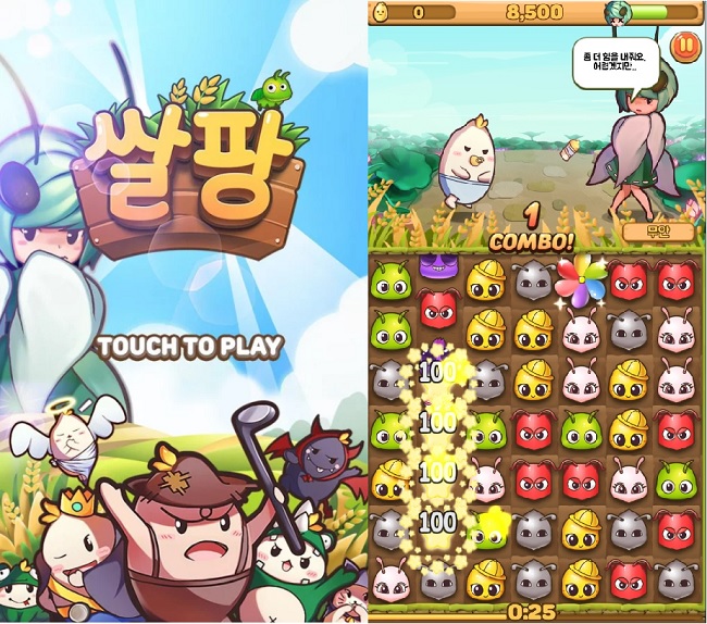 게임의 진행은 단순하다. 게임 동일한 색상 및 모양의 블럭을 움직여 가로 및 세로로 맞추면 터지게 되고, 해충을 공격해 처치한다. 게임 캐릭터는 기본적으로 쌀의 모양을 하고 있으며, 각 게임 캐릭터마다 쌀 지급량 증가 및 황금쌀 생성 확률 증가 등의 특수 능력을 지녔다.