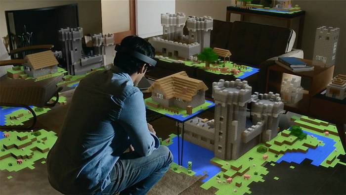 2015년 국제게임쇼 E3에서 첫 공개된 '마인크래프트' 홀로렌즈 버전의 인상은 매우 강렬했다. 자신의 테이블에서 캐릭터를 이동하거나 건축을 하고, 건물 내부를 들여다 보는 등 이미 어느 정도 개발이 이뤄졌음을 알렸다.