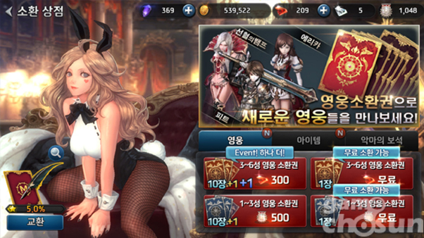 소환상점에서는 루비를 사용하면 마일리지가 적립되는데, 4성 영웅 소환권을 마일리지 A등급 보상으로 얻을 수 있다.