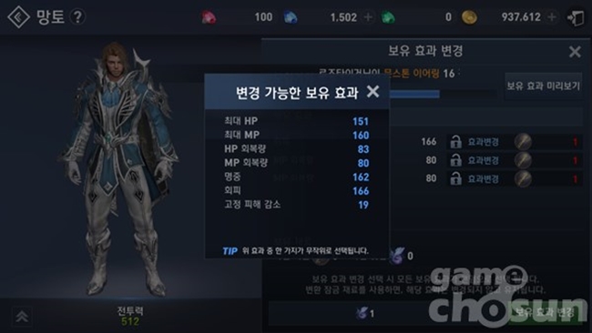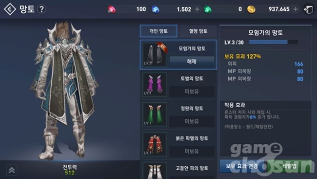 ◆ 망토 레벨업과 보유 효과 변경