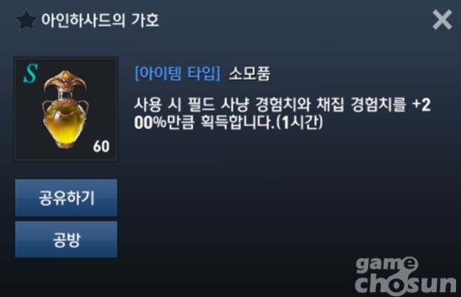 ◆ 모험가의 망토와 경험치 증가 옵션 세팅
