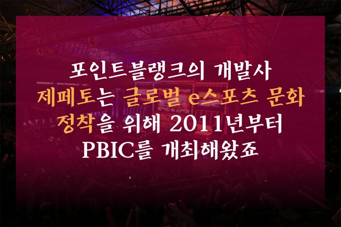 포인트블랭크의 개발사 제페토는 글로벌 e스포츠 문화 정착을 위해 2011년부터 PBIC를 개최해왔죠.