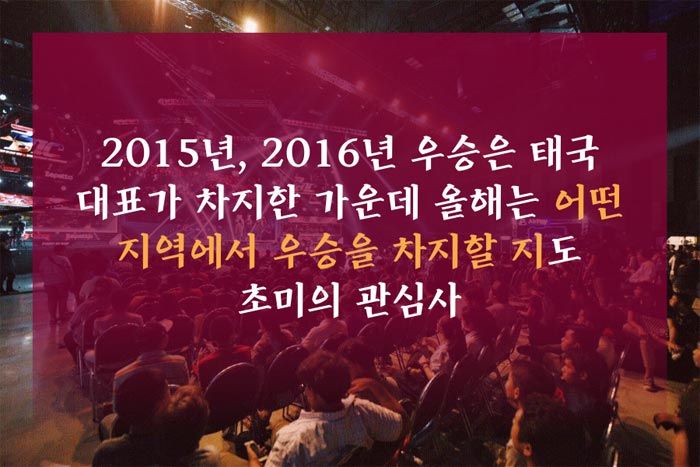 2015년, 2016년 우승은 태국 대표가 차지한 가운데 올해는 어떤 지역에서 우승을 차지할 지도 초미의 관심사.